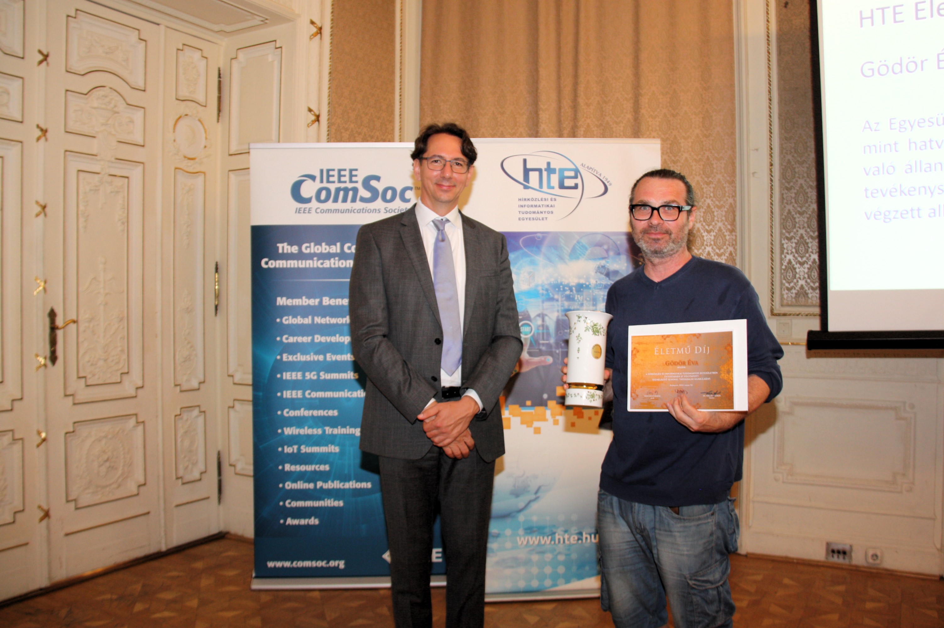 Az Egyesület a HTE Életmű díjjal Szalay István szakmai életútja előtt tiszteleg, de emellett el kívánja ismerni a HTE Kábeltelevíziós szakosztályában eddig végzett korábbi és most újra aktív tevékenységét is.