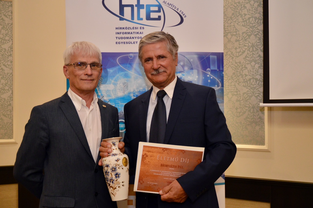Az Egyesület a most odaítélt Életmű Díjjal Szabó Csaba Attila 55 éves szakmai pályafutása alkalmából a kiemelkedő tudományos, oktatási és kutatási eredményeit valamint a HTE-n belül végzett főszerkesztői tevékenységét ismeri el mind a HTE hazai és nemzetközi folyóirata, mind pedig az Infokommunikációs Fogalomtár tekintetében.